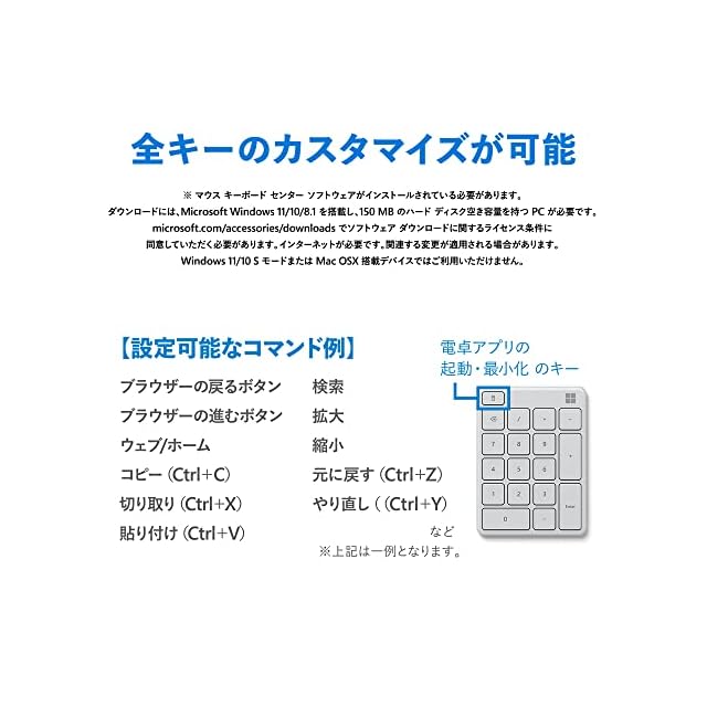 *3 マウスキーボードセンターがインストールされている必要があります。ダウンロードにはMicrosoft Windows 10/8.1 を搭載し、150MB のハード ディスク空き容量を持つ PC が必要です。