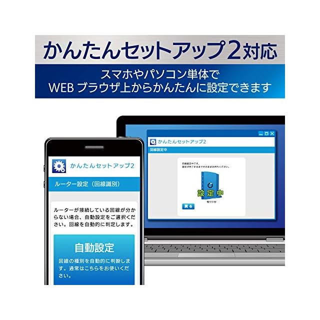 アプリやCD-ROMを使わず、スマホやパソコン単体でWEBブラウザー上から簡単に設定ができる「かんたんセットアップ2」に対応