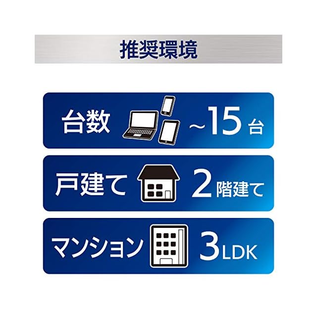 無線伝送速度(理論値):IEEE802.11ac : 最大867Mbps / IEEE802.11n : 最大300Mbps / IEEE802.11g : 最大54Mbps / IEEE802.11b : 最大11Mbps / IEEE802.11a : 最大54Mbps