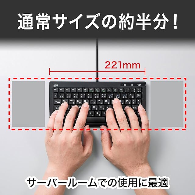 幅わずか221mm超コンパクトキーボードです。標準的なキーボードを置くことのできない省スペースな場所でも使用できます。