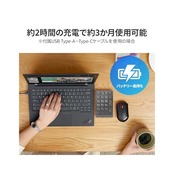 付属USB Type-A-Type-Cケーブルにより充電可能。約2時間の充電で約3か月使用可能/ リチウムイオンポリマーバッテリー採用