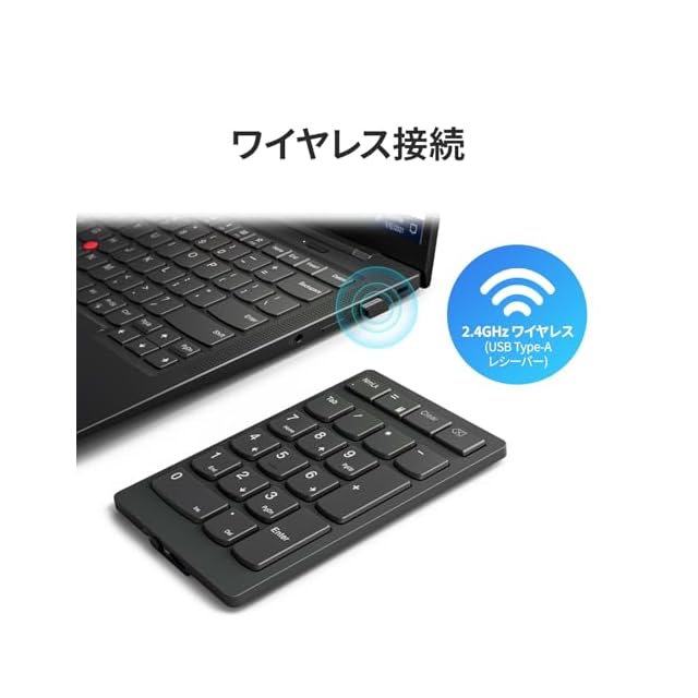 Lenovo Lenovo Go ワイヤレス 数値キーパッド 2.4G USB Type-A ワイヤレスレシーバー接続 テンキー シザーリフトキー Tabキー付き クリアキー付き 電卓アプリ起動ボタン 軽量 コンパクト グレー 4Y41C33791 | LIS MART