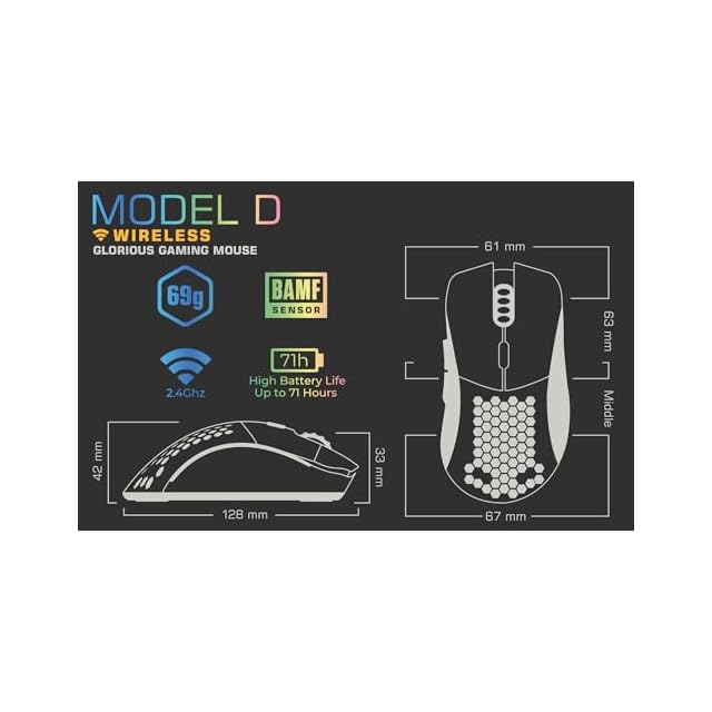 Glorious グロリアス モデルd ワイヤレス ゲーミングマウス 無線 エルゴノミクス RGB 6個プログラムボタンDPI 12 ブラック スーパーライト マウス 静音 gaming mouse 国内正規品 (69g) | LIS MART