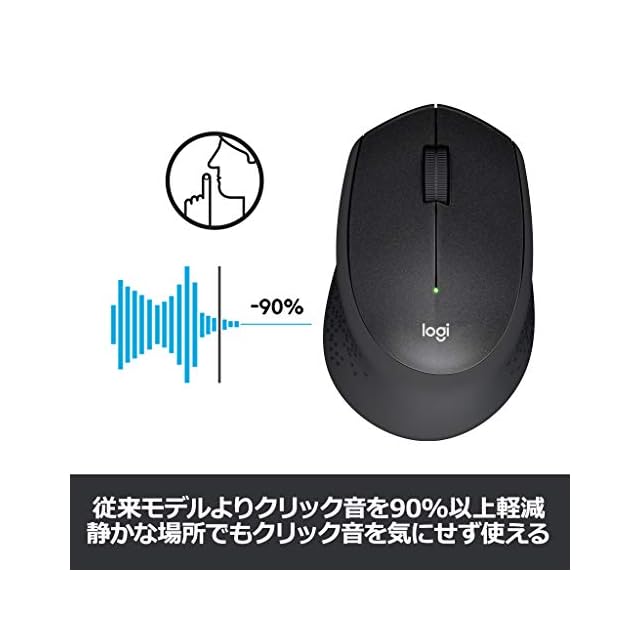 気を散らせるノイズなしで、作業に集中。ロジクール独自のSilentTouchテクノロジーが、クリック音を90%以上6ロジクールM331およびロジクールM170間のサウンドレベルの比較。独立ラボによって1mで測定された左クリックのdBA軽減する一方、マウスパフォーマンスを最高の状態に保ちます。つまり、すべてのクリックの感触はありますが、クリック音はほとんど聞こえません。