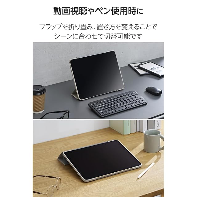 動画視聴やタイピングなどのシーンに合わせて2つのスタンド角度を選べます。
