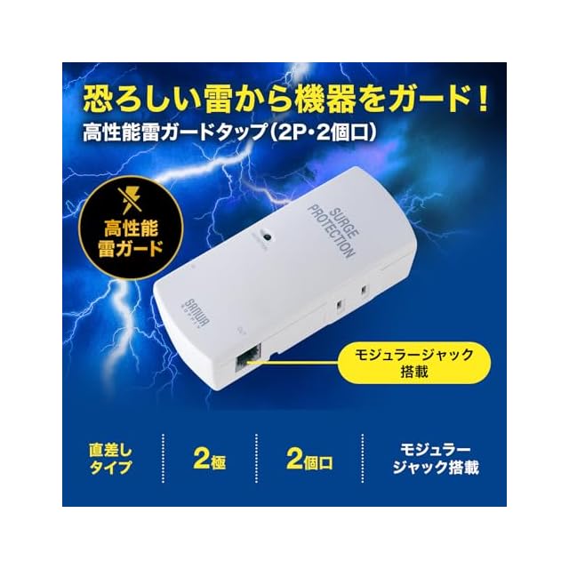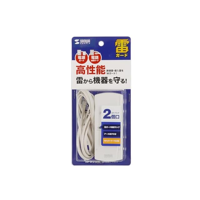 商品名:サンワサプライ 電源タップ 高性能雷ガード 2個口 2ピン モジュラージャック搭載 TAP-SP310TEL