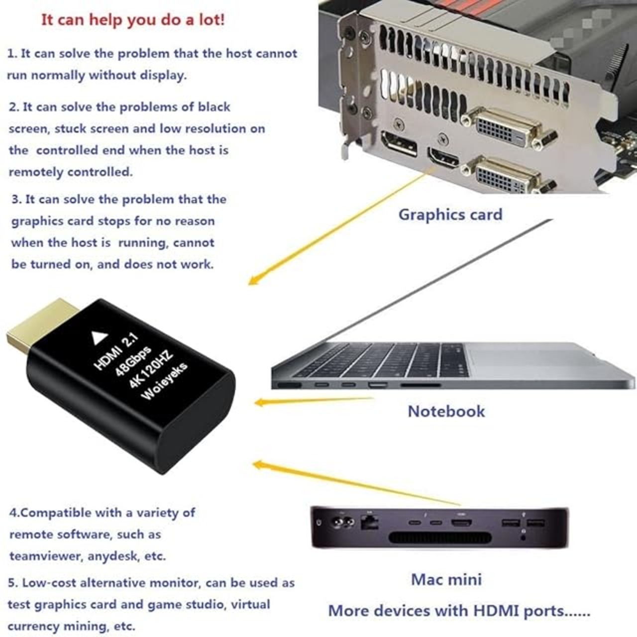Woieyeks 4K 120Hz HDMI 2.1 ダミープラグ、バーチャルディスプレイエミュレータ、ヘッドレスゴーストディスプレイアダプター、3840x2160@120HZ、1440@120HZ、1080P@120HZ対応 EDIDモニターエミュレーター(8Kはサポートしていません) | LIS MART