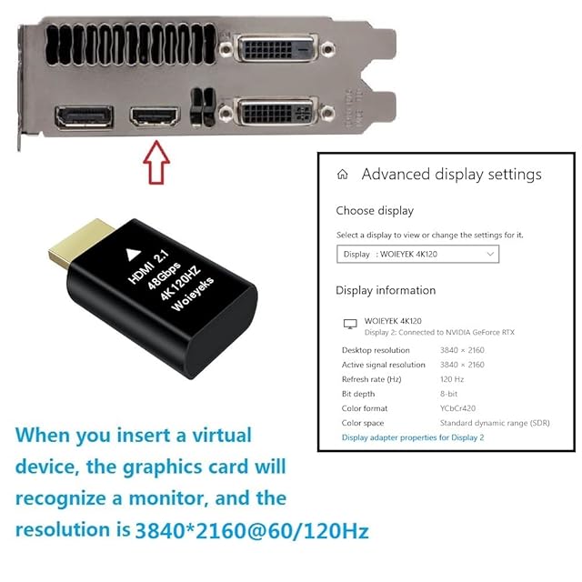 商品名:Woieyeks 4K 120Hz HDMI 2.1 ダミープラグ、バーチャルディスプレイエミュレータ、ヘッドレスゴーストディスプレイアダプター、3840x2160@120HZ、1440@120HZ、1080P@120HZ対応 EDIDモニターエミュレーター(8Kはサポートしていません)