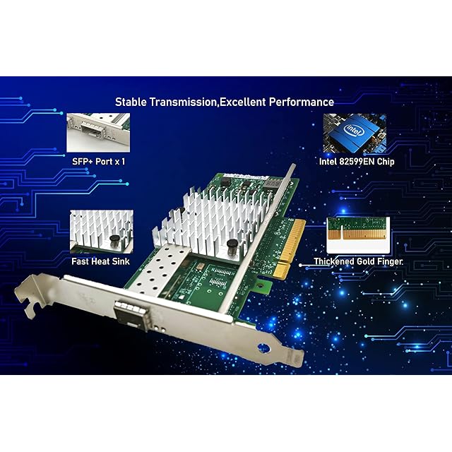 10Gbイーサネットコンバージドサーバー SFP+ポートネットワークカード(NIC) PCIE x8対応 Intel X520-DA1 82599ENチップ Windows 7/8/10/11/Visa、サーバー/Linux/VMware対応 | LIS MART