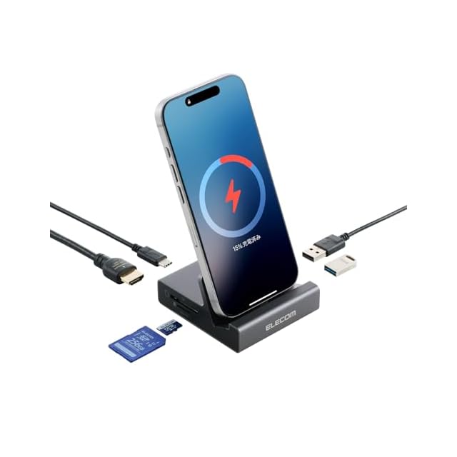 エレコム ドッキングステーション 6-in-1 USB-C スマホスタンド型 充電 HDMI 4K/60Hz USB-A×2 USB-C×1 HDMI(4K60Hz) SD+microSD グレー DST-P060BPGY | LIS MART