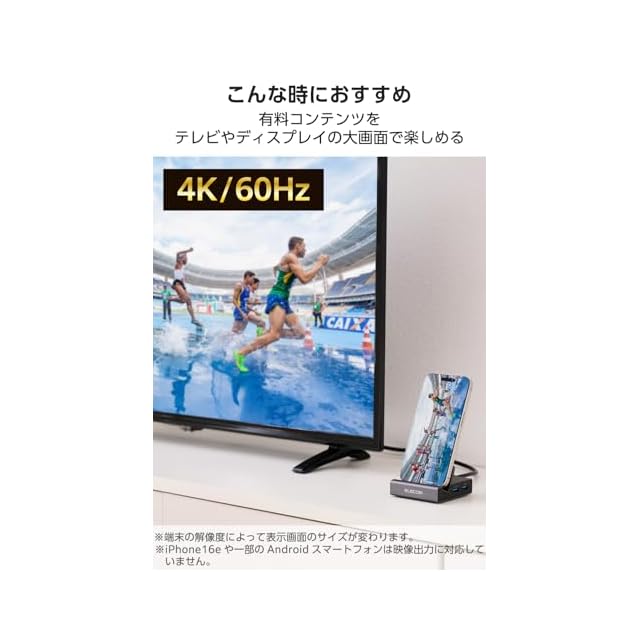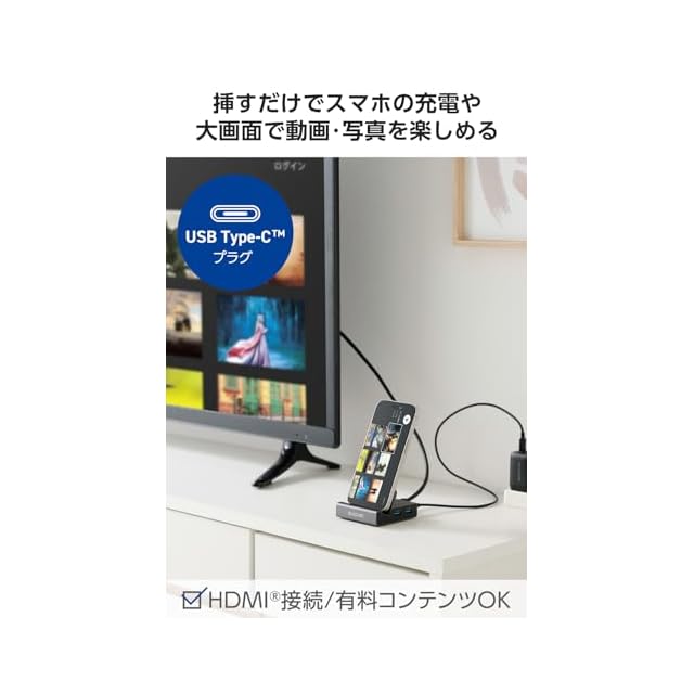 充電しながら、スマートフォンの写真・動画などを大画面に投影できる、6in1 ドッキングステーションです。