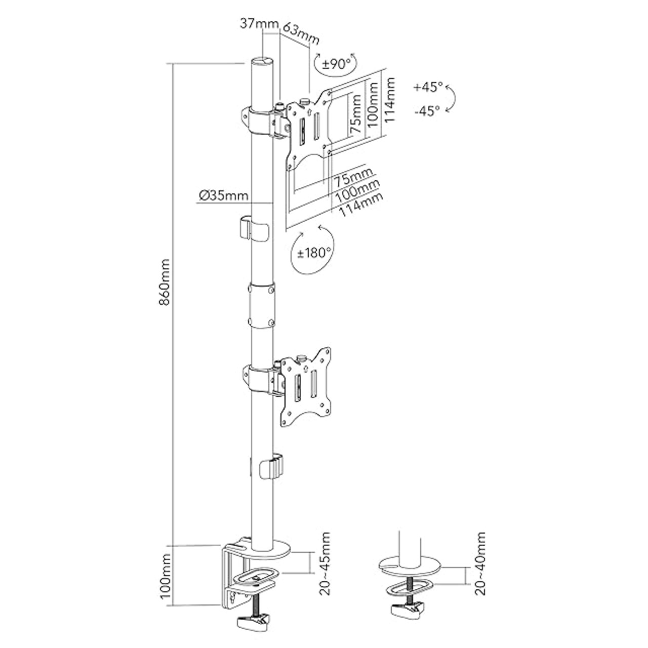 【約86cmのロングポールでデュアル環境を】約86cmのロングポールで、デスクスペースを広々と活用できます。上下2段のデュアルモニター環境を構築できます。
