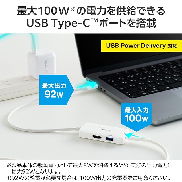※92Wで給電が必要な場合は、100W出力のAC充電器をご用意ください。