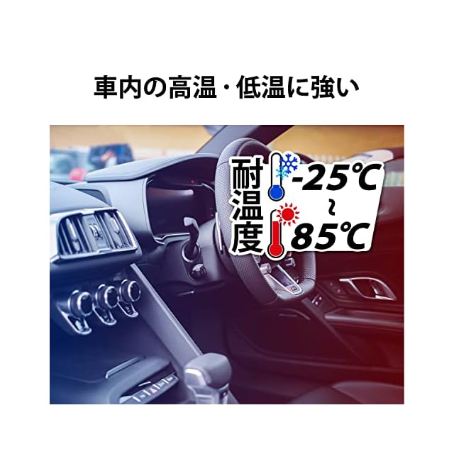 耐温度-25~85℃で、車内の高温・低温に強い仕様です。