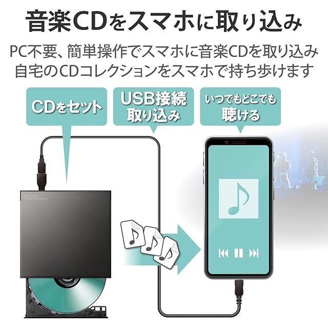 商品名:ロジテック CDドライブ スマホ用CD録音ドライブ 有線 Android対応 USB2.0 ブラック LDR-SM8URBK