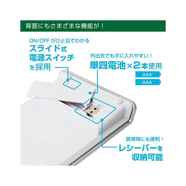 安定性の高い2.4GHz帯無線方式を採用し、レシーバー接続のみで使用可能