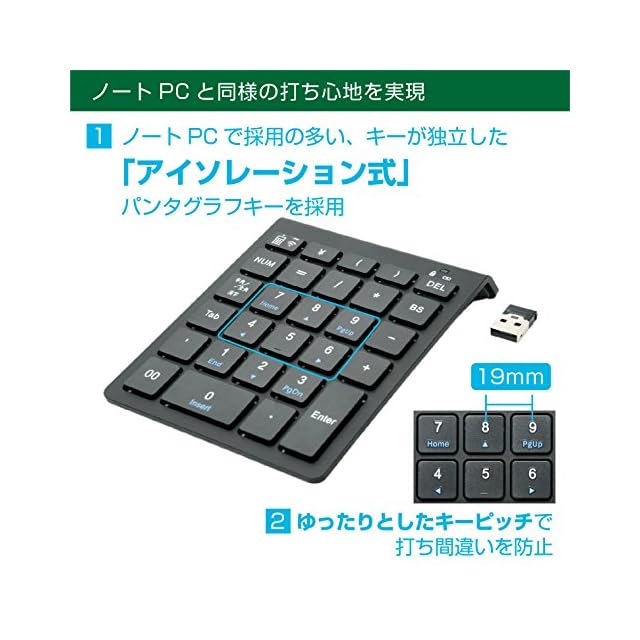 商品名:ミヨシ MCO Windows用 ワイヤレステンキー 2.4GHz接続 5列・28キー アイソレーション式 ブラック TEN24G01/BK