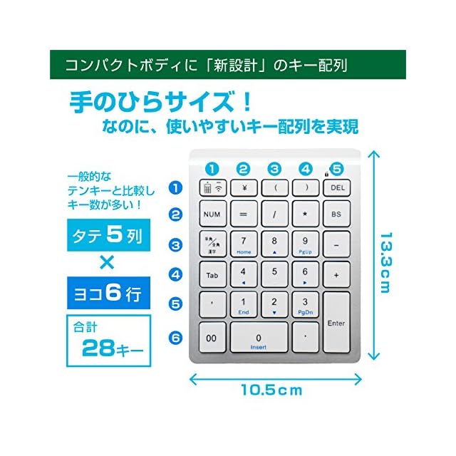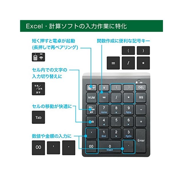 コンパクトボディに、表計算ソフト入力の効率化を考えたキー配列を採用