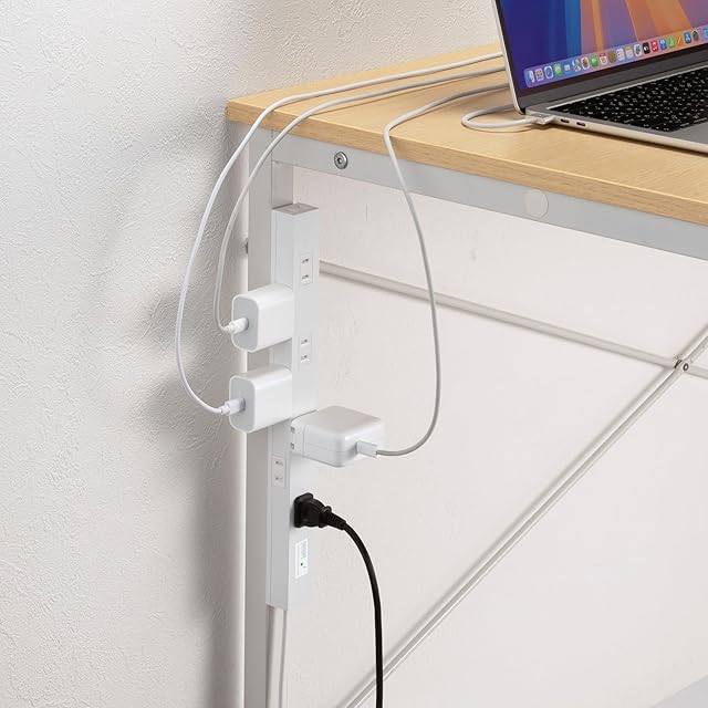上面&側面交互差込口レイアウトでACアダプタ接続に便利なスリムタイプの電源タップです。