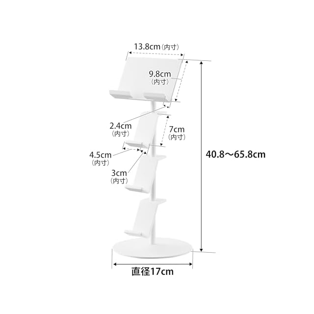 商品サイズ:W17×D17×H40.8~65.8cm ▪商品重量:990g ▪内寸 ヘッド部:W13.8×D2.4×H9.8cm 置き台部:W4.5×D3×H7cm