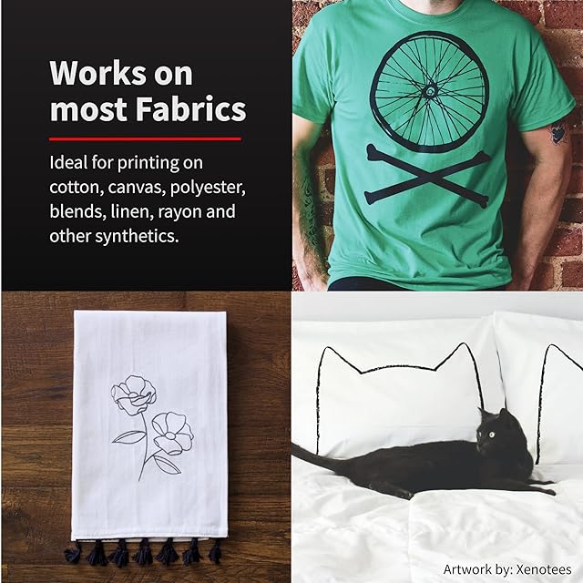 作業に適した性質 - 鮮やかな色彩で、広い範囲に均一に広がります 布地、紙、ダンボールに対応 - 綿、ポリエステル、ブレンド生地、リネン、レーヨン、その他合成繊維を含めた幅広い生地への印刷に活用できます。他にも紙やダンボールにも対応 変質しない生地用塗料 - 染み込んだインクがソフトな風合いを生み、適切な熱硬化処理を行えば変質することもありません スタジオや教室で使っても安全 - 全色AP認定取得。石けんと水で簡単に洗い落とせます 淡い色の生地に使ってください - 淡い色の生地に使えばベストな仕上がりになります