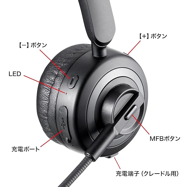 商品名:サンワサプライ Bluetoothヘッドセット(ノイズキャンセル機能・充電クレードル付き) MM-BTMH66BK