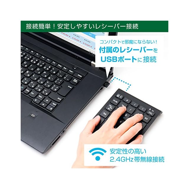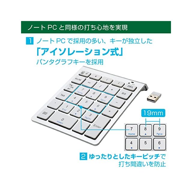 商品名:ミヨシ MCO Windows用 ワイヤレステンキー 2.4GHz接続 5列・28キー アイソレーション式 シルバー TEN24G01/SL