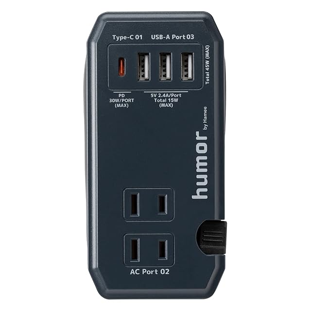 商品名:humor handy Plus 充電器 acアダプター AC 2ポート PD30W対応 Type-C 1ポート USB 3ポート 電源タップ [グレーブラック]