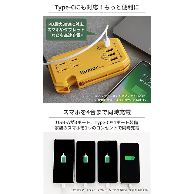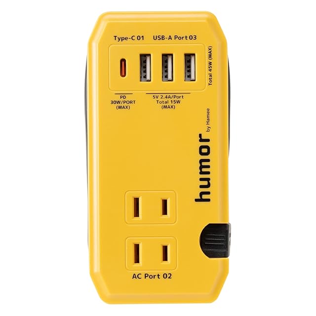 商品名:humor handy Plus 充電器 acアダプター AC 2ポート PD30W対応 Type-C 1ポート USB 3ポート 電源タップ [マスタードイエロー]
