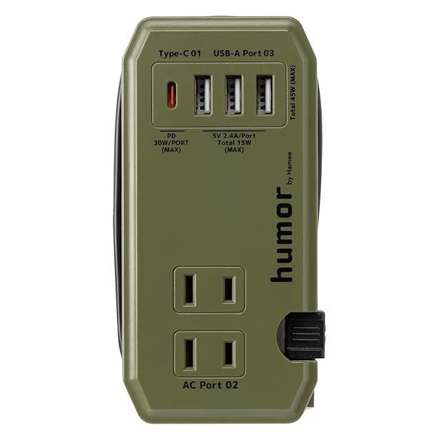 商品名:humor handy Plus 充電器 acアダプター AC 2ポート PD30W対応 Type-C 1ポート USB 3ポート 電源タップ [オリーブグリーン]