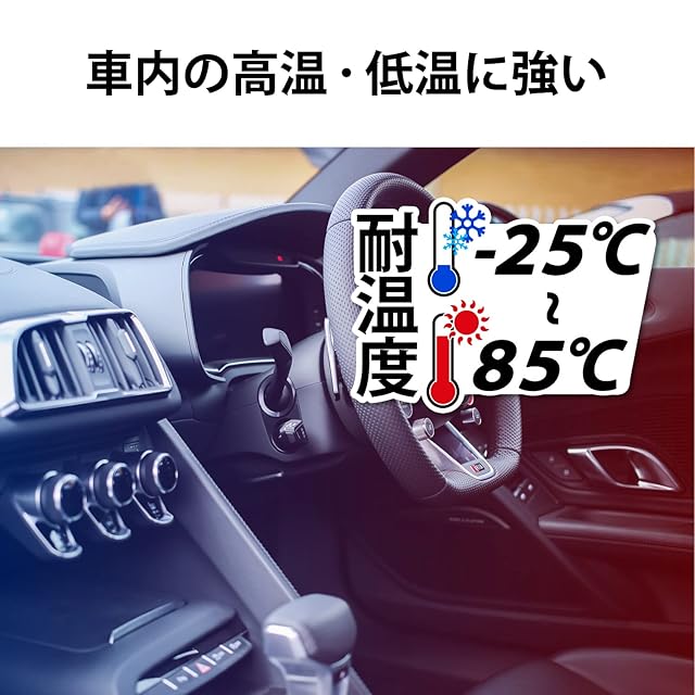 耐温度-25~85℃で、車内の高温・低温に強い仕様です。