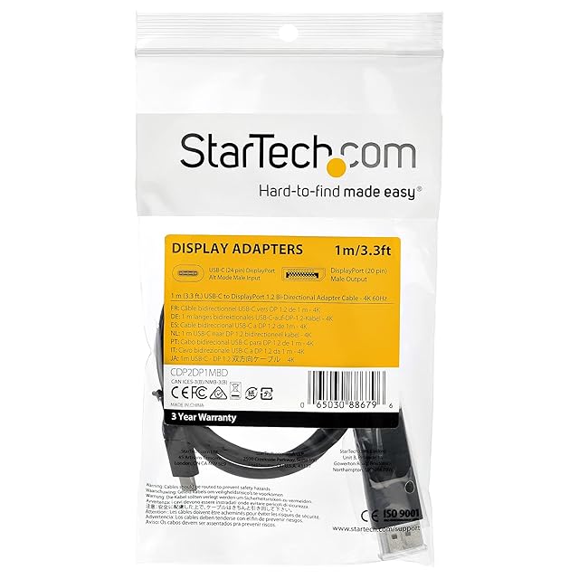 StarTech.com USB-C - DisplayPort 1.2 ケーブル/1m/4K60Hz/双方向対応/Thunderbolt 3互換/ブラック CDP2DP1MBD | LIS MART