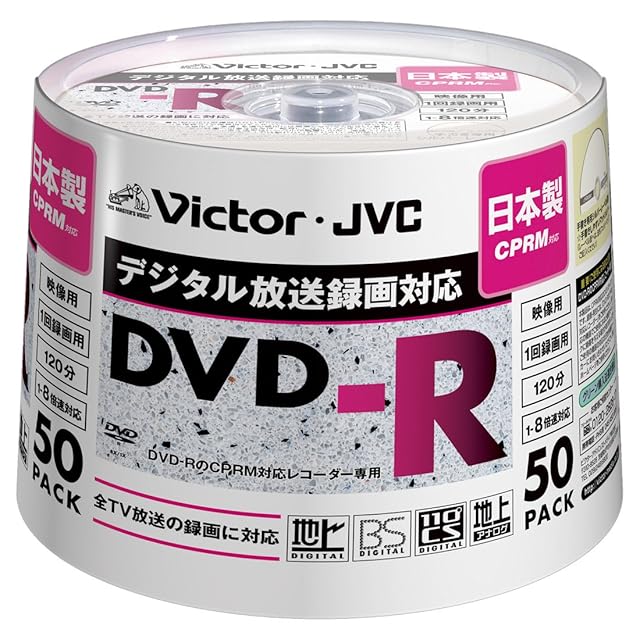 商品名:Victor 映像用DVD-R CPRM対応 8倍速 120分 4.7GB シルバーレーベル 50枚 日本製 VD-R120SC50