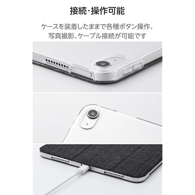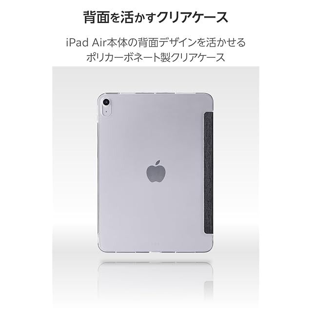 エレコム iPad Air 11インチ (M3/M2) 10.9 (第5世代 第4世代) ケース ファブリック フラップケース 薄型 軽量 背面クリア 2アングル ブラック TB-A25MWVCBK | LIS MART