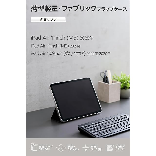 商品名:エレコム iPad Air 11インチ (M3/M2) 10.9 (第5世代 第4世代) ケース ファブリック フラップケース 薄型 軽量 背面クリア 2アングル ブラック TB-A25MWVCBK