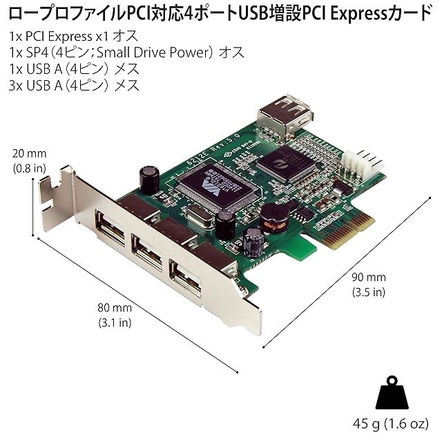 StarTech.com High Speed USB 2.0 4ポート増設PCI Expresカード ロープロファイル対応 外部ポート x3 / 内部ポート x1 PEXUSB4DP | LIS MART
