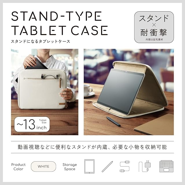 商品名:エレコム タブレットケース 汎用 ~13インチ スタンド機能付き ホワイト TB-13ACMFWH
