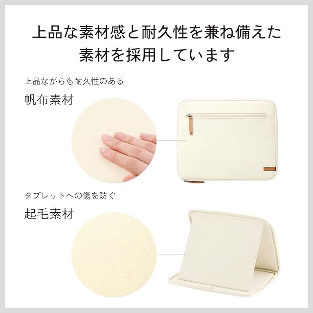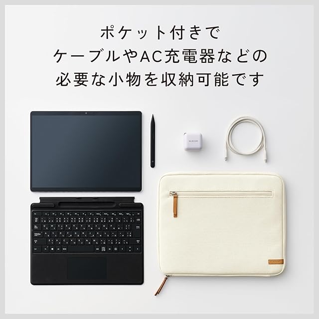シンプルなデザインながら、ポケット付きでケーブルやAC充電器などの必要な小物を収納できます。