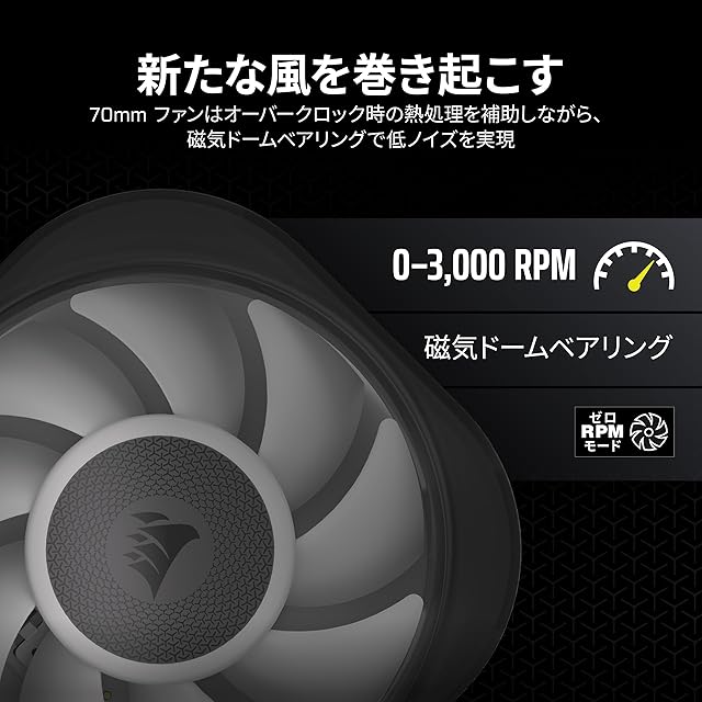 3,000rpmで動作する70mm径のファンが、VRMなどCPUソケット周辺を冷却します。CPUをオーバークロックした環境に適しています。