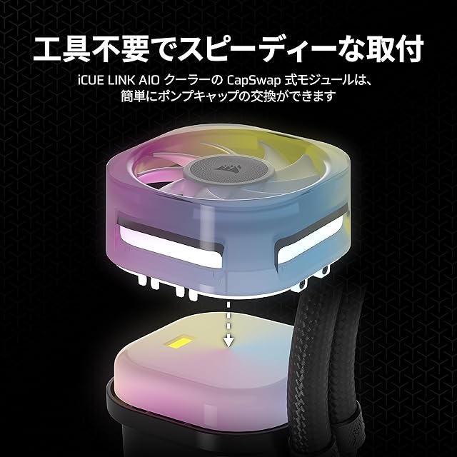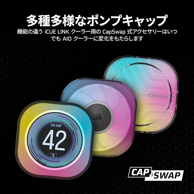 CORSAIR製iCUE LINK対応一体型水冷CPUクーラーのヘッド部にファンを増設するためのポンプキャップです。