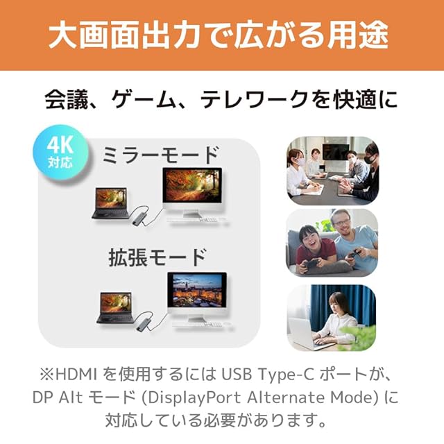 映像出力対応のUSB Type-Cポートを搭載したWindows、Mac、Chromebook、iPadに対応(iPadでの4K使用に対応。