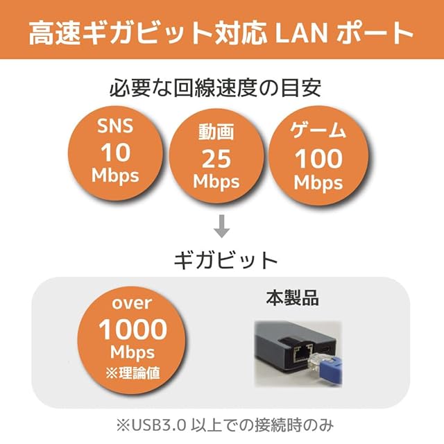 高速ギガビット対応のLANポート搭載。