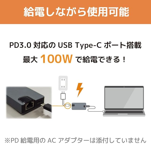 USB Type-C接続で、有線LAN、HDMI、PD、USB ハブ×3 を搭載した多機能なマルチアダプター。