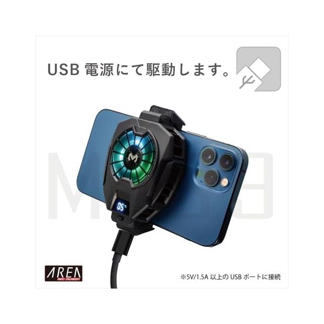 商品名:エアリア M-S9 スマートフォン用 ペルチェ素子冷却ファン 電源ボタン搭載 熱対策 クーラー USB給電式 熱対策 対応 SD-COOLG