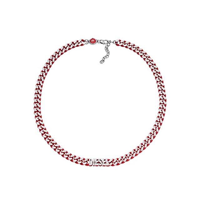 DIESEL オールジェンダー ステンレススチールチェーンネックレス, Length: 450MM+50MM, Width: 21.9MM, Height: 8MM, ステンレス鋼, 宝石なし シルバー/レッドチェーン。 DX1416040 | LIS MART