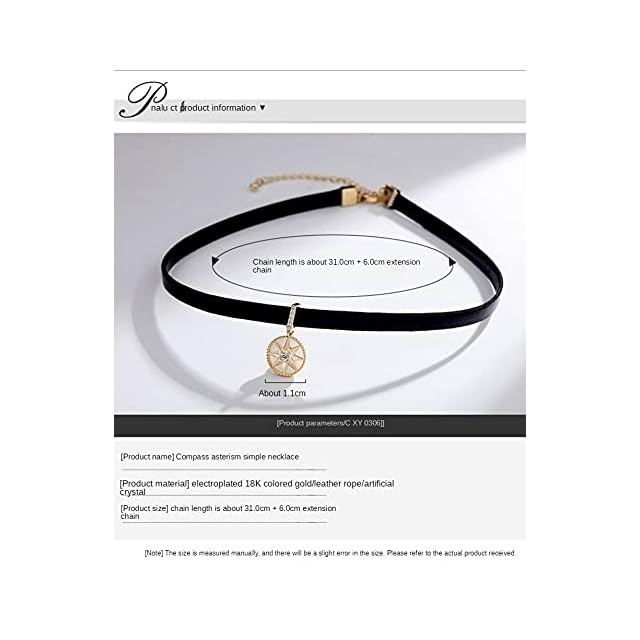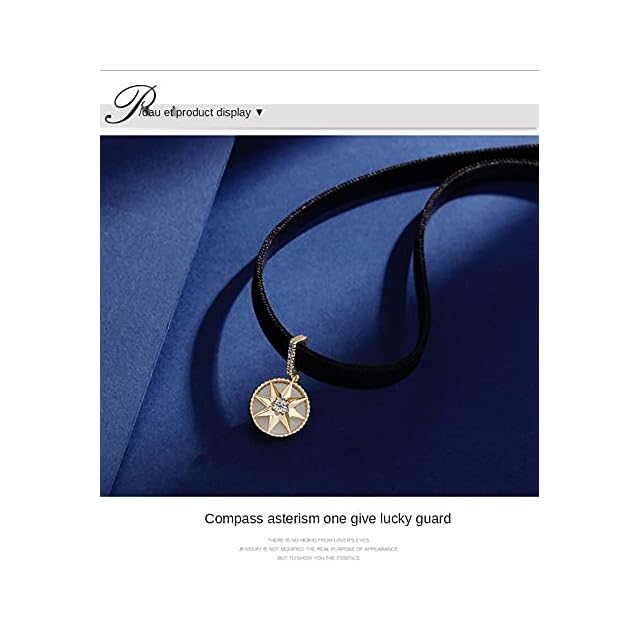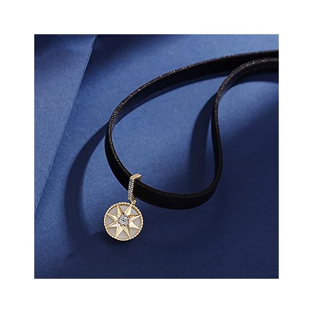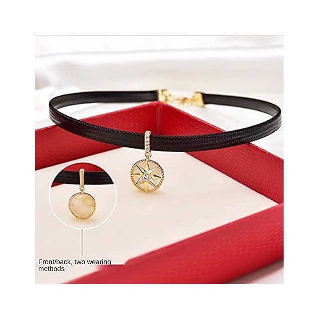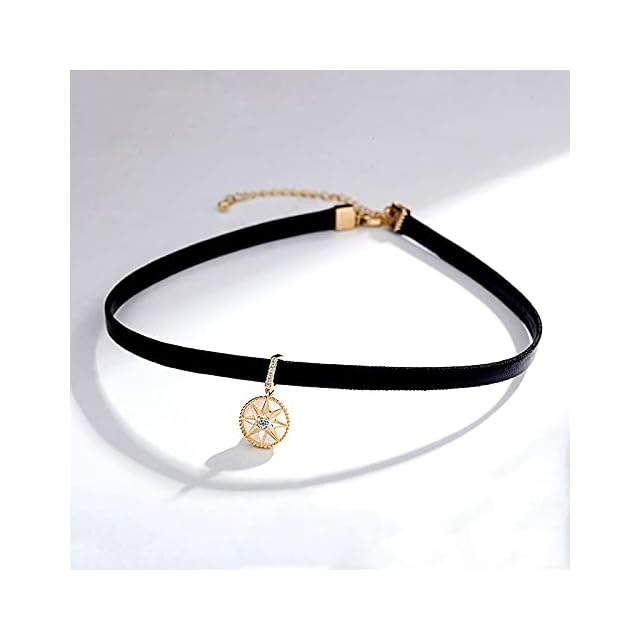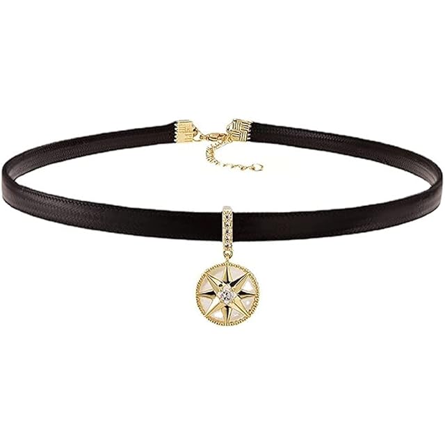 Deelfel チョーカー レディース 黒 ブラック レザー 首輪 おしゃれ キラキラ 18金 ジルコニア スター 星 羅針盤 チョーカー カジュアル ファッション アクセサリー サイズ調整可能 | LIS MART