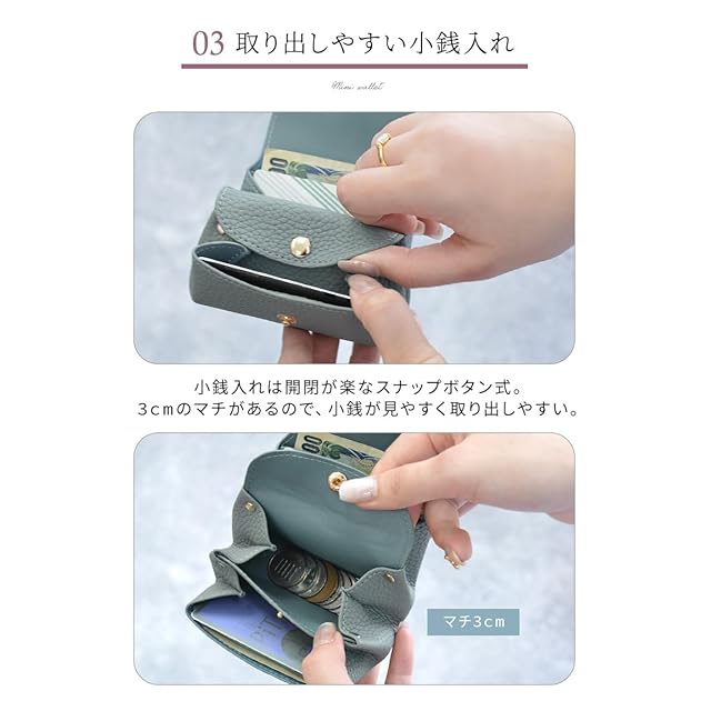 ・小さいのにお札が折れずに収納できるお財布です。・コロンとした小ぶりなサイズ感。・お札は内側両端のポケットに滑り込ませて収納できます。・カードを収納するスペースももちろん完備◎・中央には小銭入れがあります。<br>・トレンドの小さいバッグにも楽々収納できます。・シンプルなデザインなので、年齢問わずお使いいただけます。