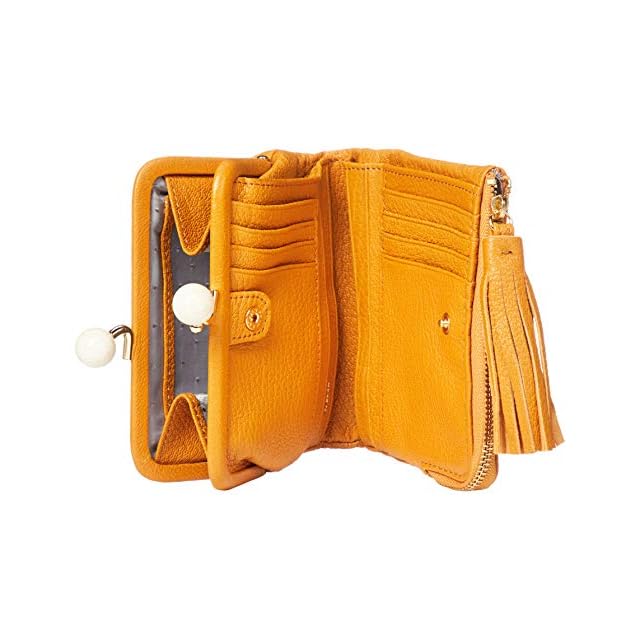 商品名:[ペルケ] アクリル玉がま口2つ折り財布 財布 レディース 本革 08-06-03160 YE