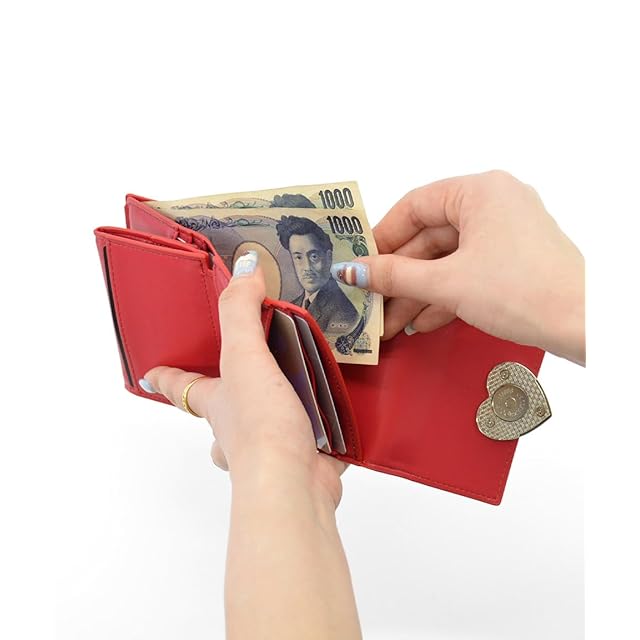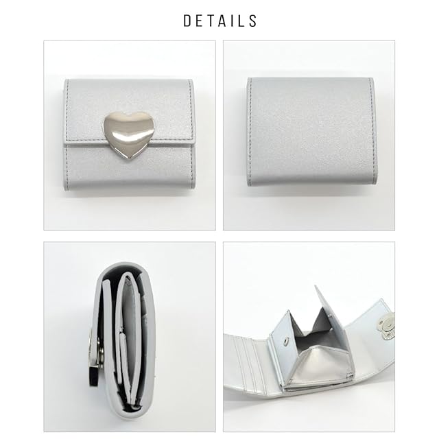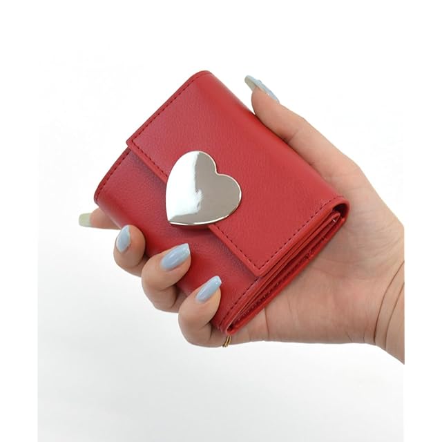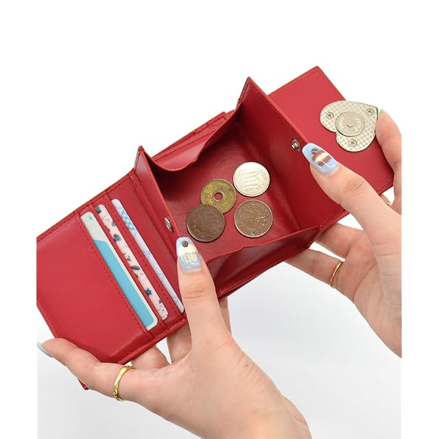 ・大きなハートがトレンドライクな三つ折り財布。・内側の小銭入れは、見やすく取り出しやすいボックス型。・縦からも横からも出し入れできる札入れで、支払いもスマート。・内側のカードポケットは7つあり、見た目以上の収納力もポイント。・片手に収まるちょうどイイサイズ感で、小さめのバッグにもぴったり。・同じデザインのバッグやパスケースと合わせても可愛い♪