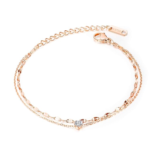 アンクレット レディース ステンレス キュービックジルコニア ダブルチェーン ローズゴールド シルバー 調整可能 21cm+4.5cm 金属アレルギー対応 おしゃれ アクセサリー プレゼント 誕生日 クリスマス | LIS MART